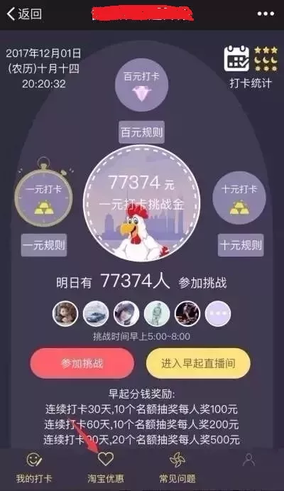 - 如果准时打卡的朋友,可以在第二天分得平台的随机奖励和没有完成打卡的费用,以此鼓励;
